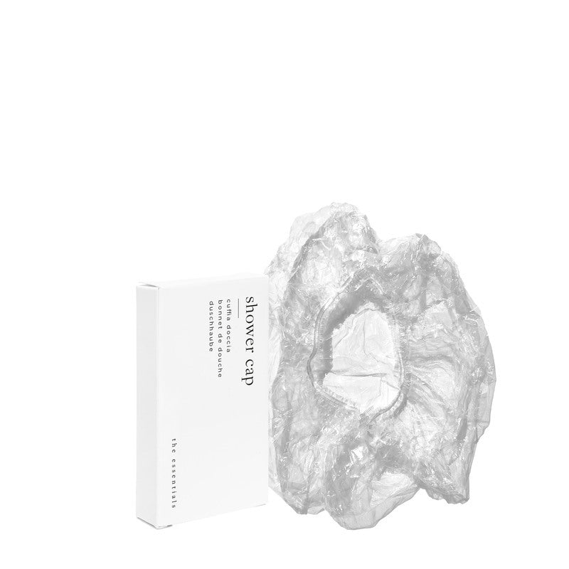 Duschhaube in weißer, 100 % recycelbarer Papierverpackung. Eine Ergänzung von minimalistischem Design, die sich in Kombination mit der klassischen Courtesy-Pflegelinie sehr gut an verschiedene Einrichtungsarten anpasst. Maße: 45x835x14 mm