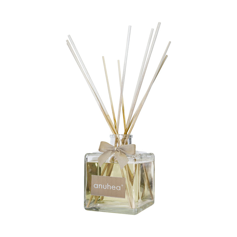 Parfum Argan, Capacité 2L, Matériel Verre transparent, Comprend bâtons et ruban beige. Collection Anuhea.