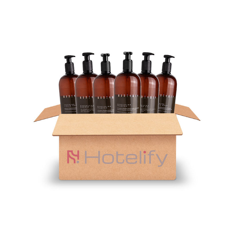 Un kit pratique composé de 18 pièces au total, comprenant distributeurs rechargeables de shampooing, gel douche et savon liquide qui vous permettra d’offrir une gamme de produits d’accueil essentielle.