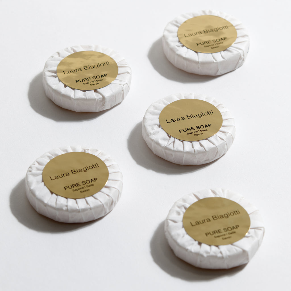 La gamme de produits d'accueil de luxe Laura Biagiotti Roma pour hôtel rappelle la fragrance inspirée des célèbres collections de parfum Roma et Roma Uomo, lancées respectivement en 1988 et 1992.