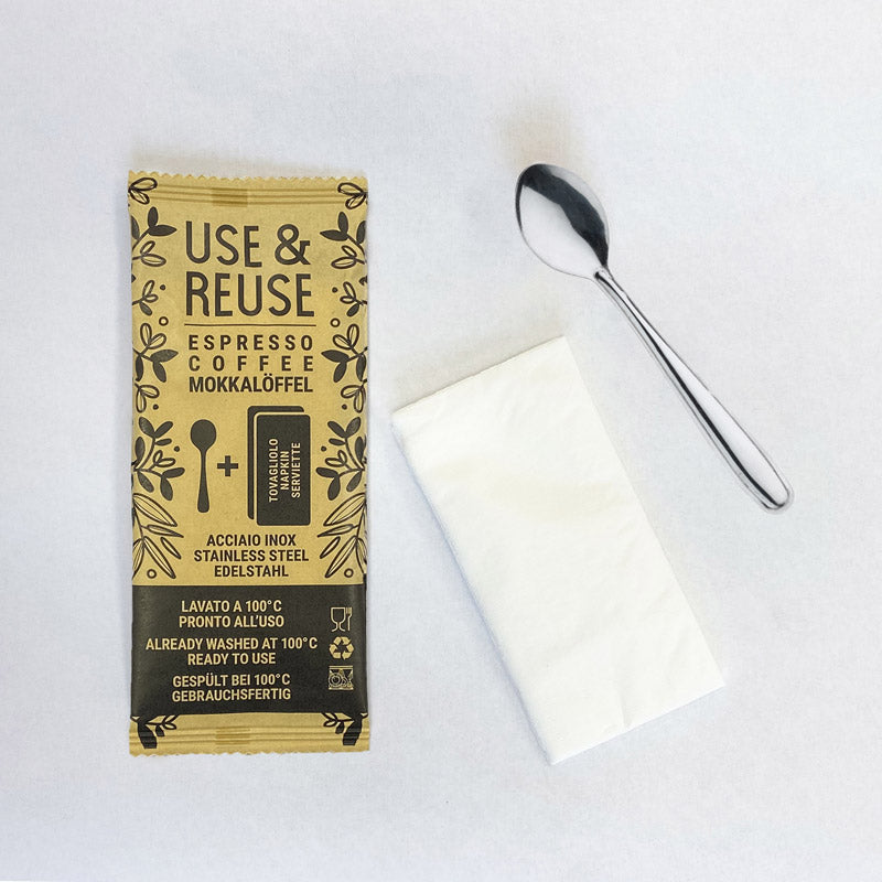 Set cucchiaino moka e tovagliolo 3 veli pronto all'uso.