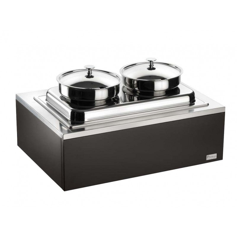 I Caldi Buffet grazie ai fornelletti inox in dotazione mantengono costante una temperatura regolabile tra i 65° e 80°C. Protetti da un piano in acciaio, questi oggetti sono caratterizzati da tre lati chiusi e uno aperto, per facilitare l’aerazione.