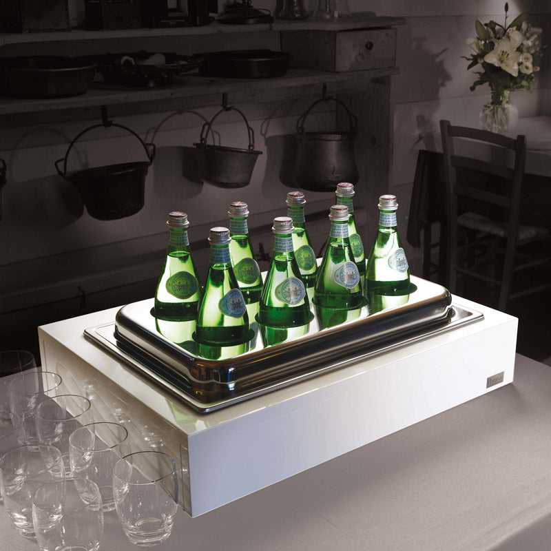 I Refrigeranti Buffet grazie alle glacette incluse oppure al ghiaccio mantengono la temperatura sotto i 10°C impedendo ai batteri di deteriorare gli alimenti.