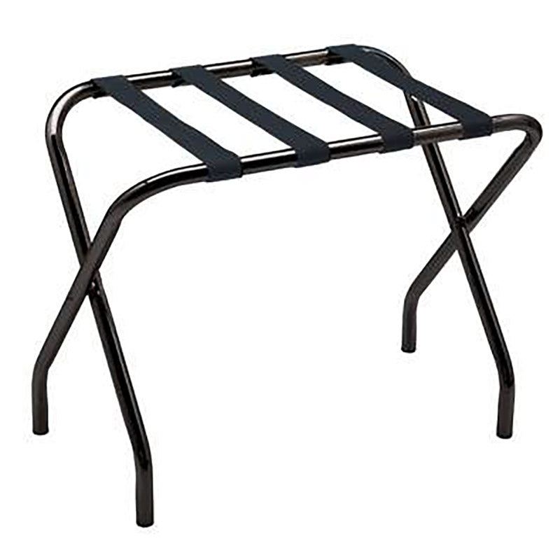 Reggivaligia adatto a supportare, in modo pratico e robusto, i bagagli degli ospiti. Realizzato in acciaio di alta qualità con finitura nera e cinghie in PVC, combina eleganza e funzionalità.